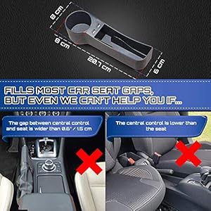 WARNING TIPS: To ensure the car seat organizer set will fit, first measure the gap and note the position of your center console prior to purchasing. If the gap is wider than 0.6”, it won’t fit. If your console is lower than the seats, the fillers are also not compatible with your car.