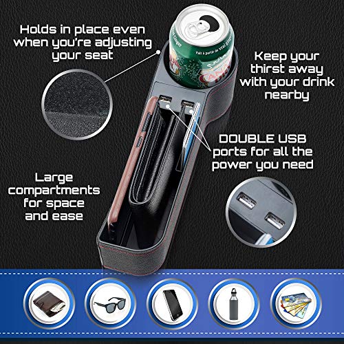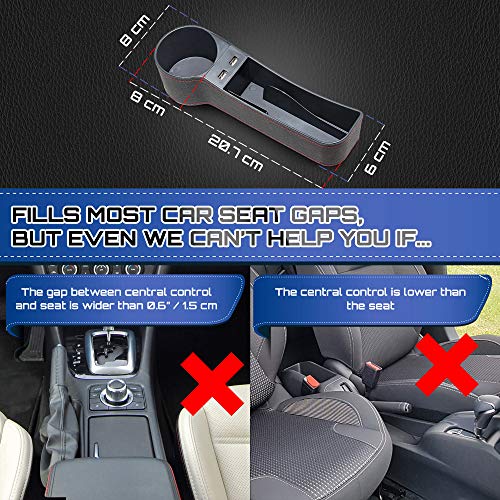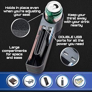 ✔ KEEP YOUR DEVICES FULLY CHARGED … Smartphone or tablet, you’ll have more than enough ports to keep them juiced up. Every car seat gap organizer has 2 USB-A ports. Just connect it to your car’s cigarette lighter and make charge anxiety a thing of the past.