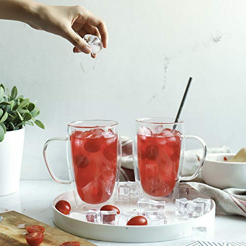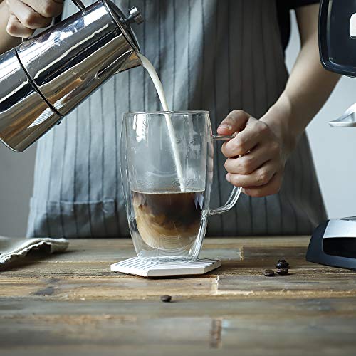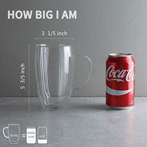 Sweese 416.101 Glass Coffee Mugs Set of 2 – Double Wall Tall Insulated Tea Cup with Handle Glassware, Perfect for Cappuccino, Latte, Macchiato, Tea, Juice, Iced Beverages, 15 oz