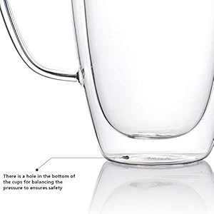 DESIGN–There is a small round hole design on the bottom of glass coffee cup, in order to prevent glass mugs burst when using, allows the glass to breathe in process. It is seal, the water would not go in.