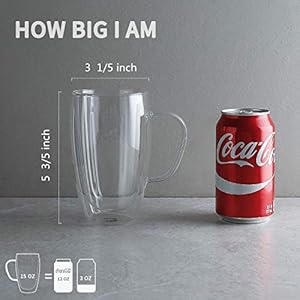 WIDELY USE – The glass coffee glasses hold 15 oz, maximum capacity perfect for serving hot coffee, hot tea, lattes, cappuccinos, every beverage. Plus they are safe safely be used in the microwave, freezer, dishwasher .