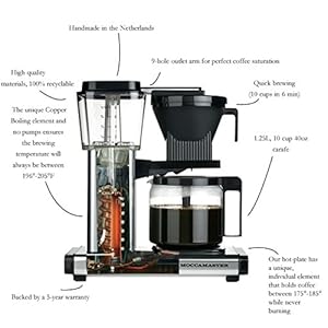 Easy to Use: The Moccamaster brews a full 40 oz pot of coffee in 4-6 minutes using one switch